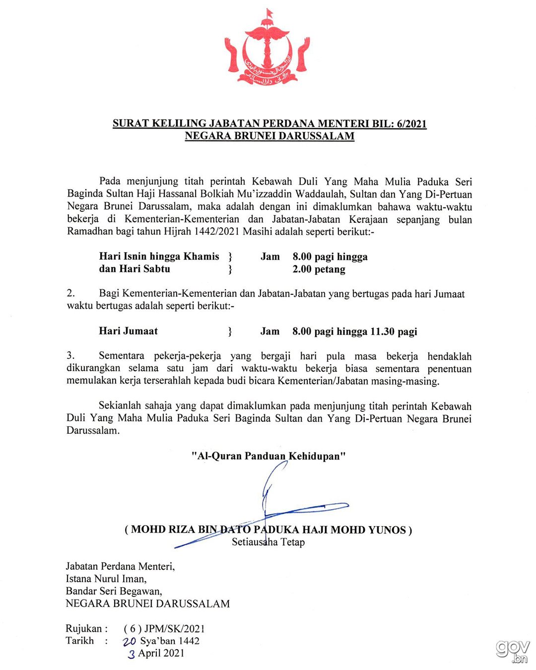 Gov Bn ε¨ Twitter δΈ Surat Keliling Jabatan Perdana Menteri Bilangan 6 2020 Makluman Waktu Waktu Bekerja Di Kementerian Kementerian Dan Jabatan Jabatan Kerajaan Sepanjang Bulan Ramadhan Bagi Tahun Hijrah 1442 2021 Masihi Govbn Brunei Https T Co